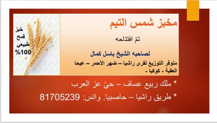 ويوفر مخبز شمس التيم خدمة التوزيع إلى معظم قرى منطقة راشيا.