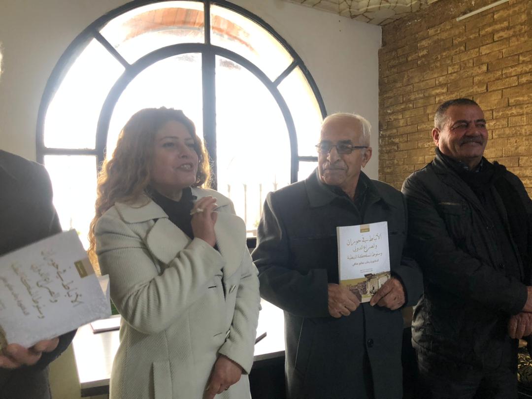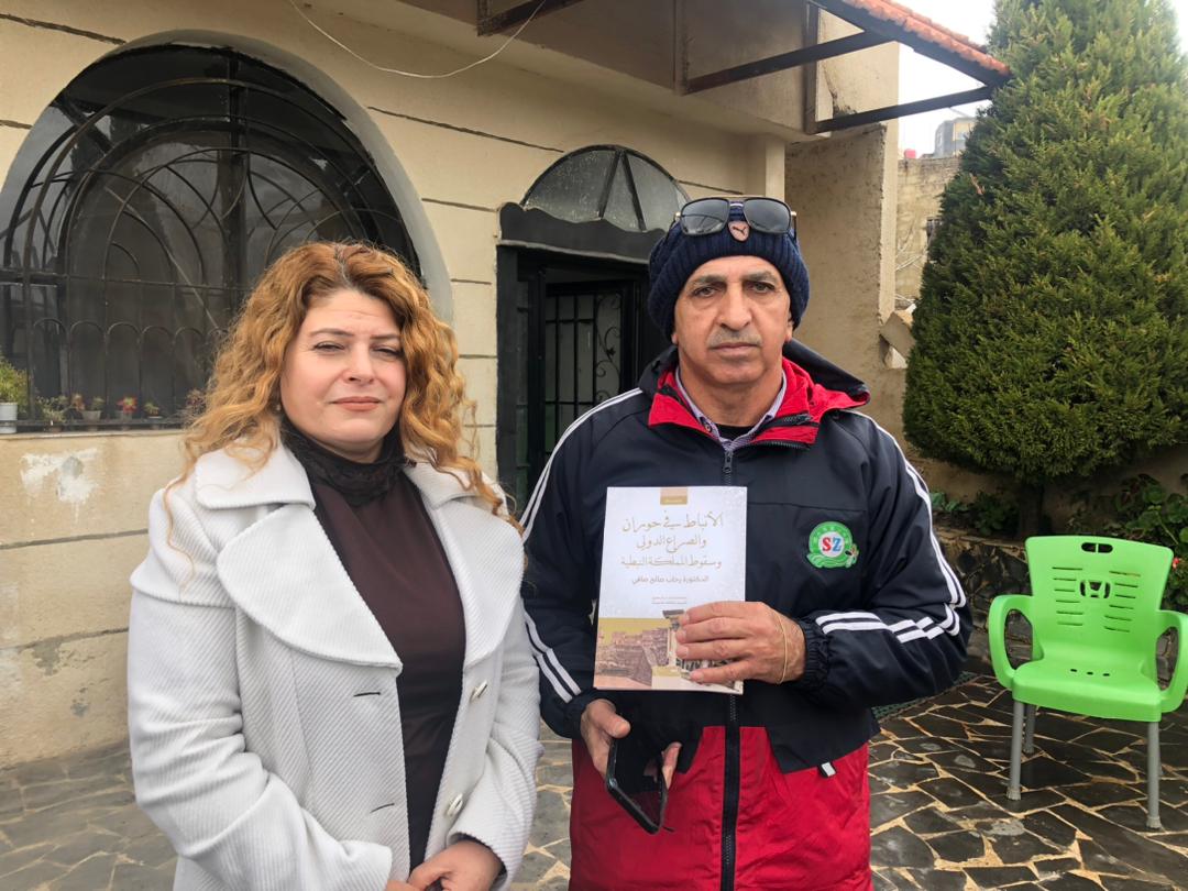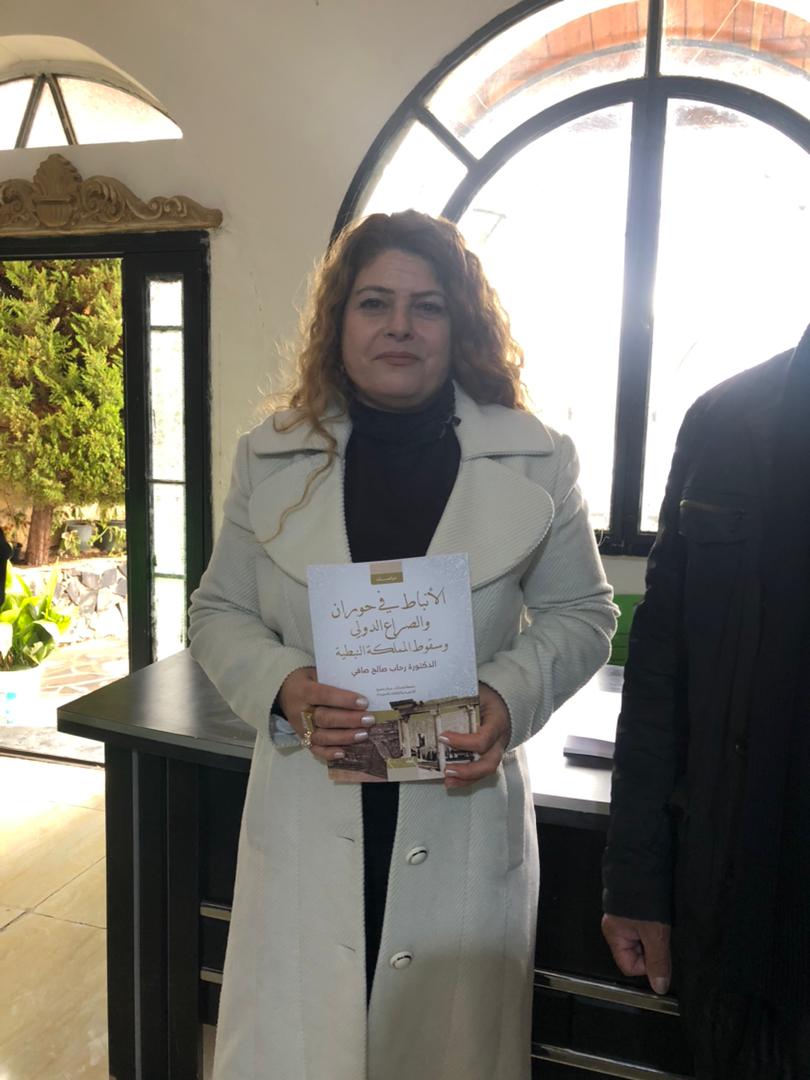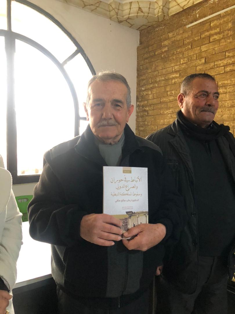 ثم تحدث الأستاذ فوزي صادق عن أهمية الكتاب والجهد الذي بذلته الدكتورة رحاب في توثيق تاريخ المنطقة، فأشار إلى أن هذا العمل البحثي يملأ فراغاً في المكتبة التاريخيّة المتعلقة بالوجود النبطيّ في حوران.