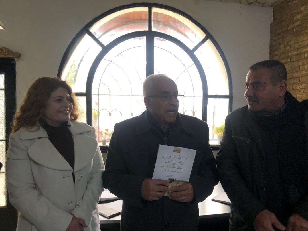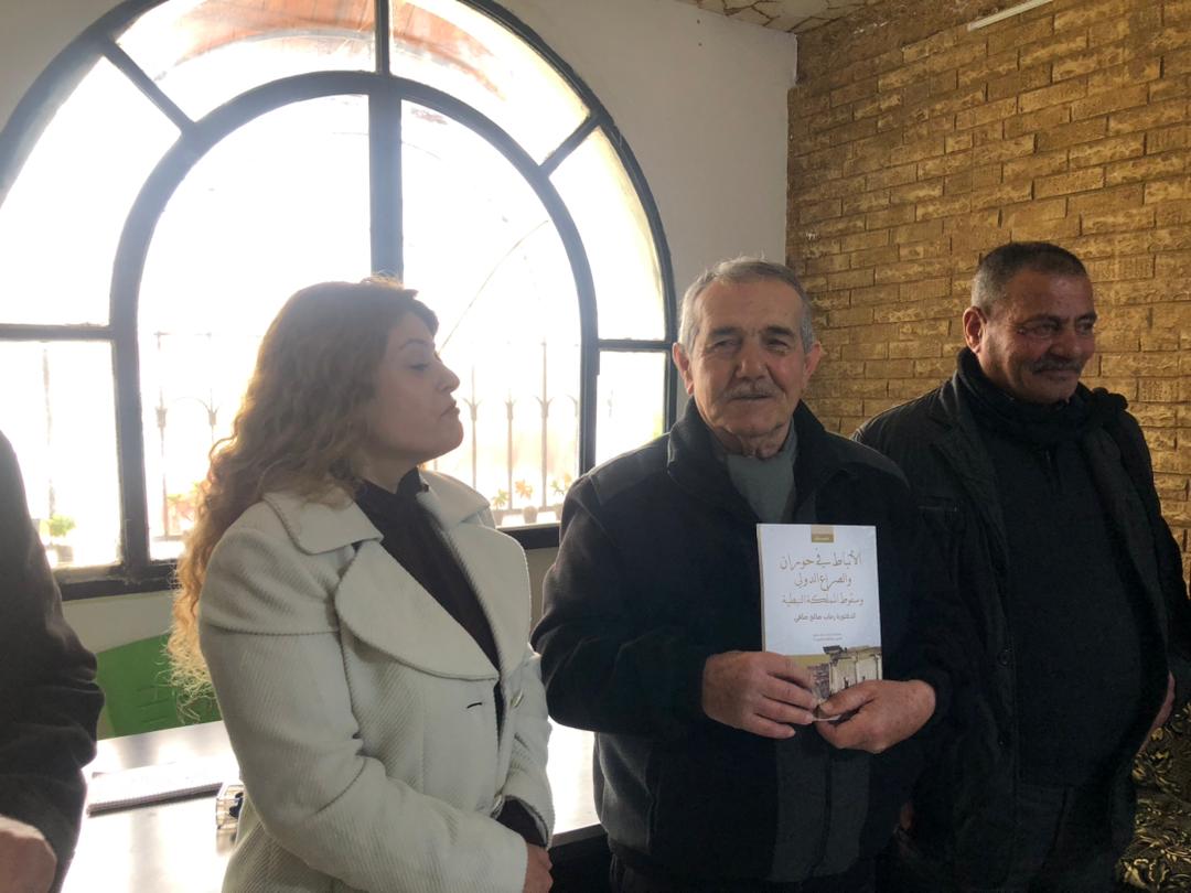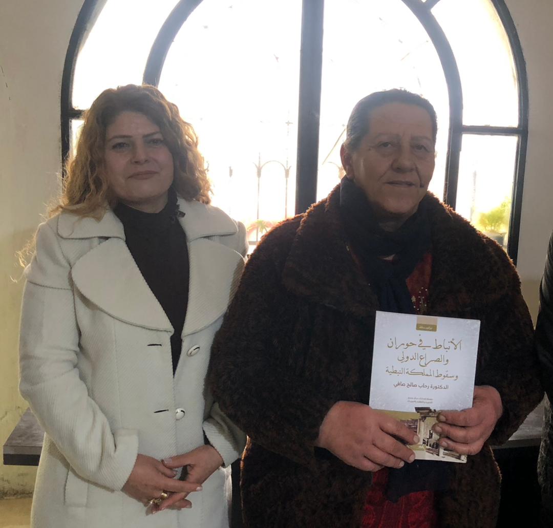 ثم تحدث الأستاذ فوزي صادق عن أهمية الكتاب والجهد الذي بذلته الدكتورة رحاب في توثيق تاريخ المنطقة، فأشار إلى أن هذا العمل البحثي يملأ فراغاً في المكتبة التاريخيّة المتعلقة بالوجود النبطيّ في حوران.